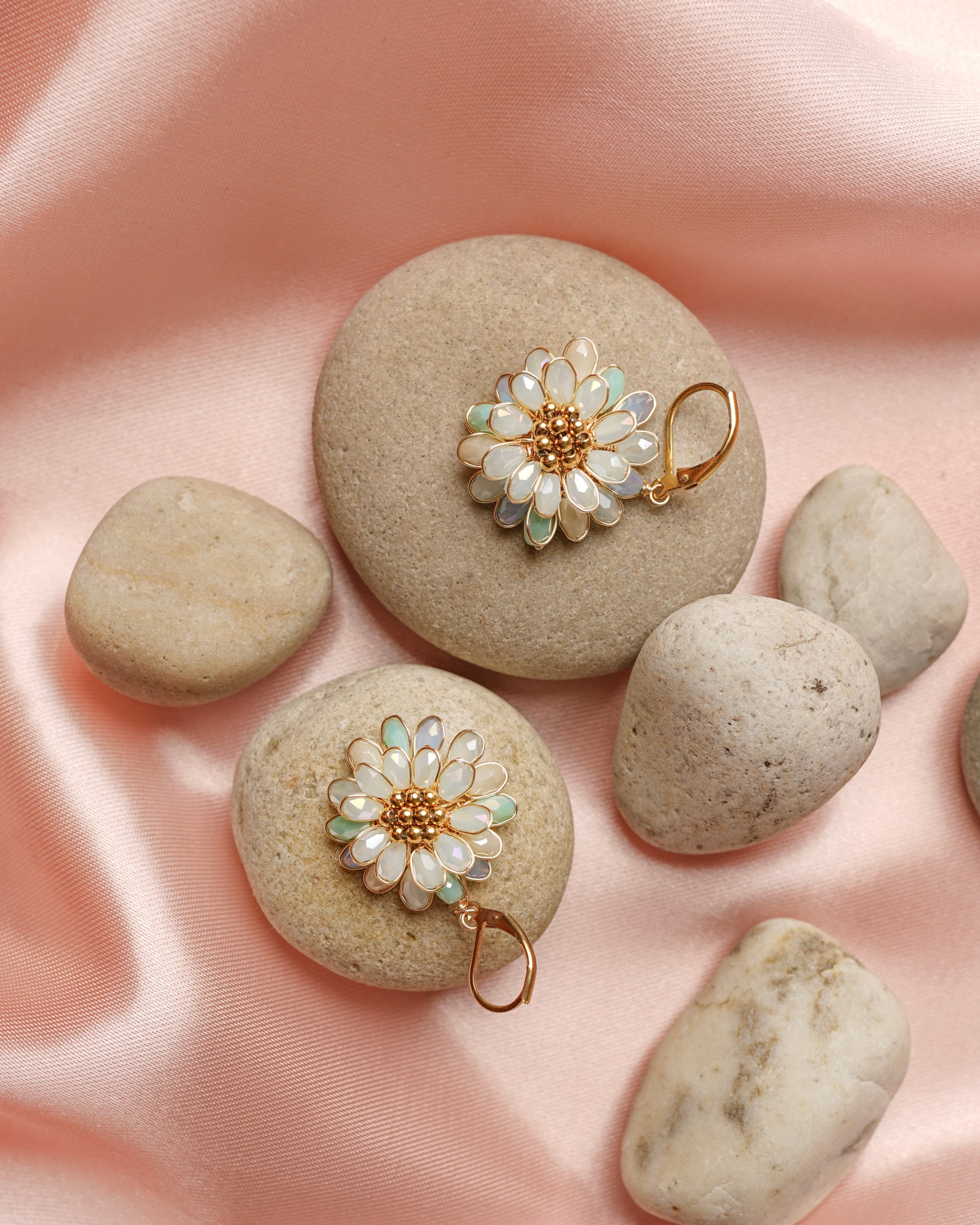 Ideales para chicas con ganas de conquistar miradas, hechos a mano con una combinación de gotas de cristales de murano y accesorios de acero inoxidable en forma de margaritas.