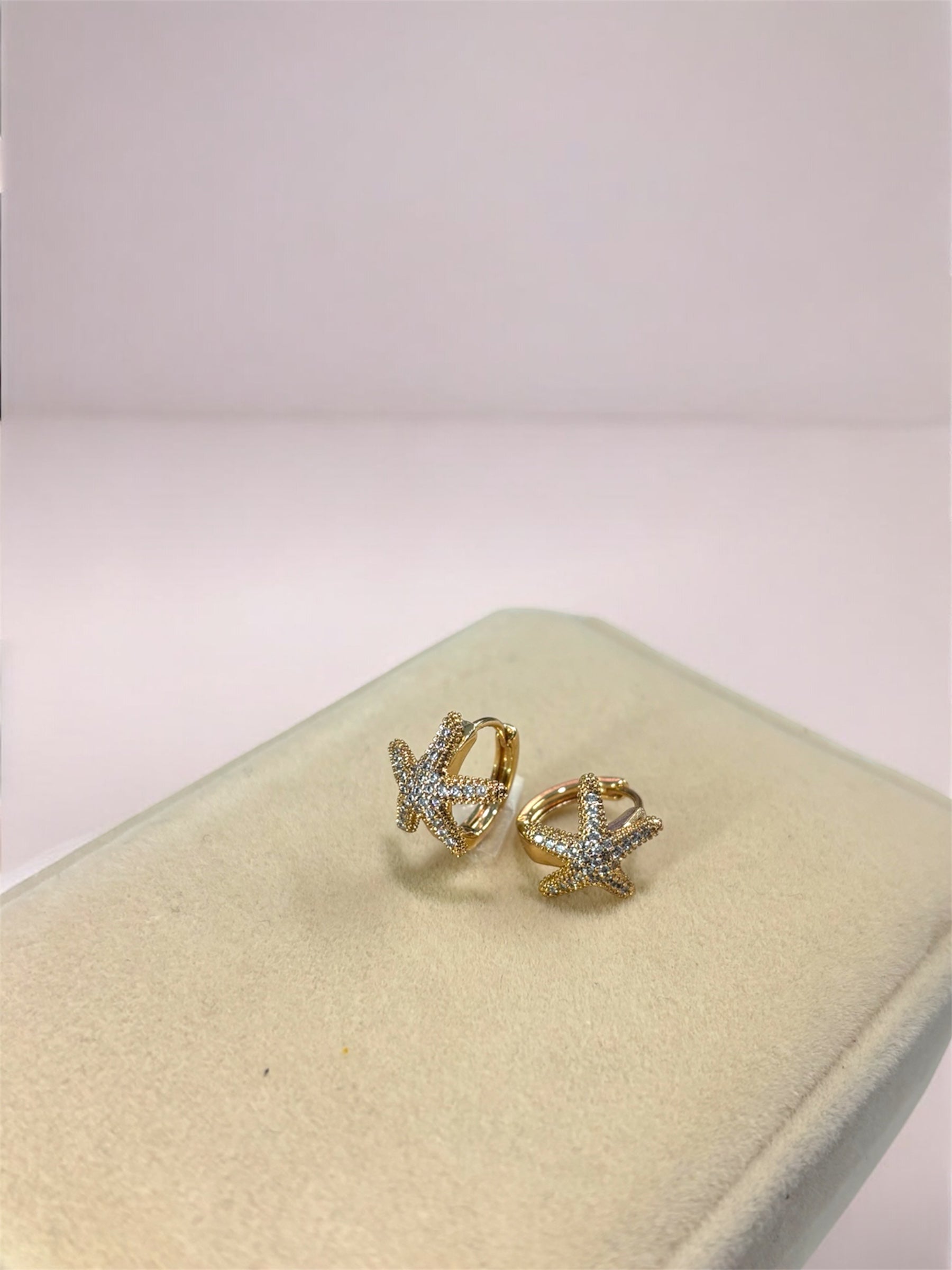 Argolla de Estrella de Mar con zircones de acero inoxidable bañado en oro rose.