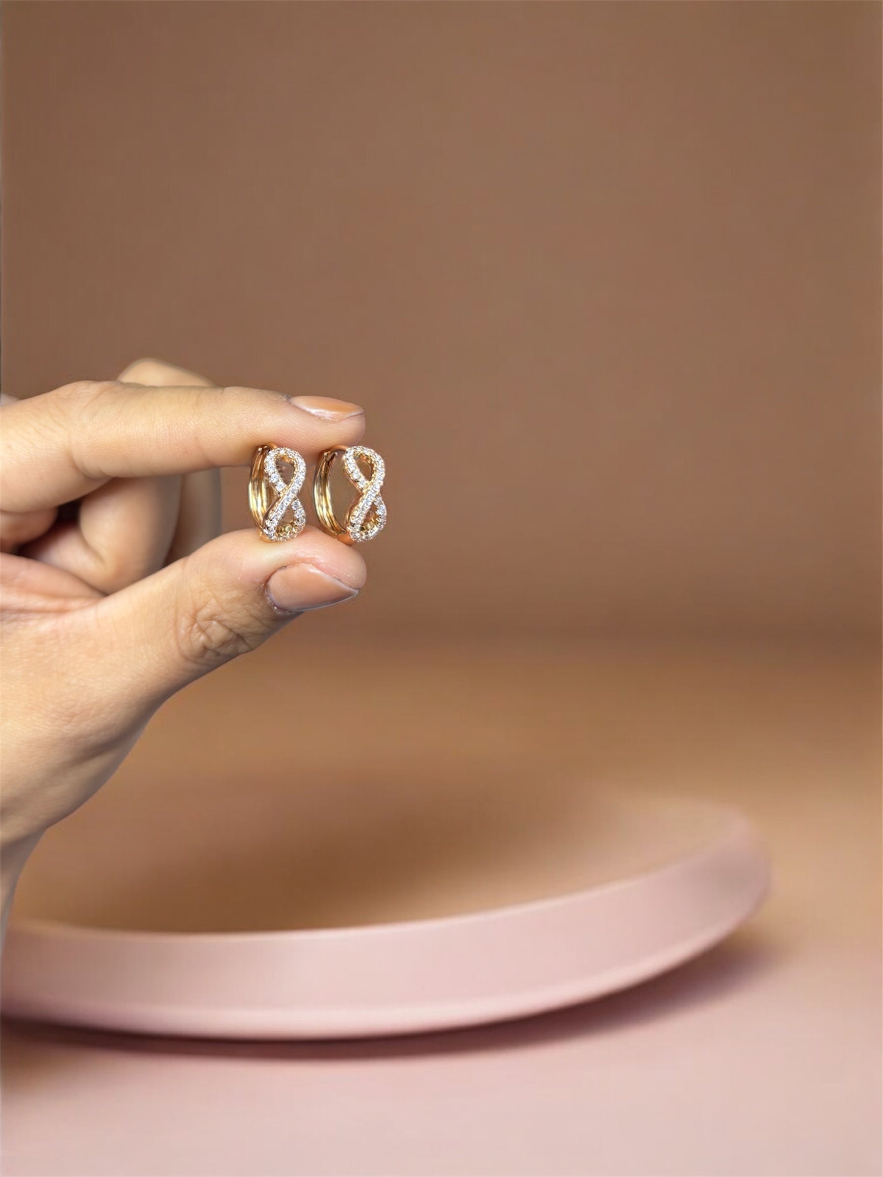 Argolla Cruz con zircones de acero inoxidable bañado en oro rose.